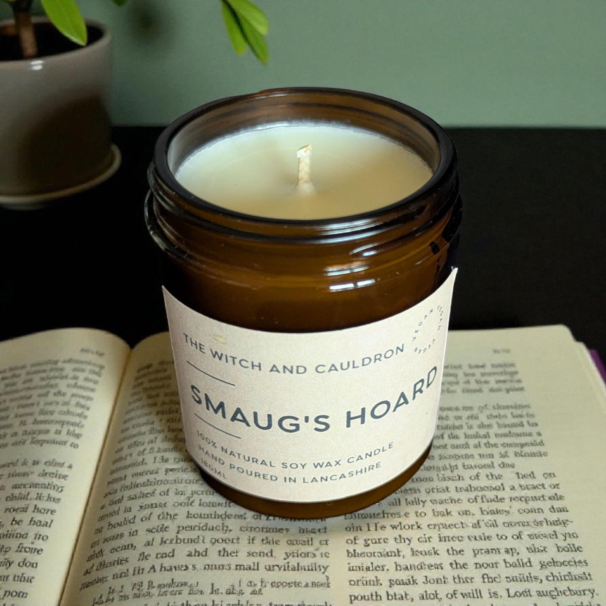 Our Smaug's Hoard Soy Wax Candle is inspired by Smaug the dragon from J.R.R. Tolkien's novel The Hobbit. It has a gorgeous warm earthy blend of pure Frankincense, Patchouli, Sandalwood, Myrrh and Rose Geranium essential oils to recreate what Smaug's Lonely Mountain treasure filled lair could of smelt like!
