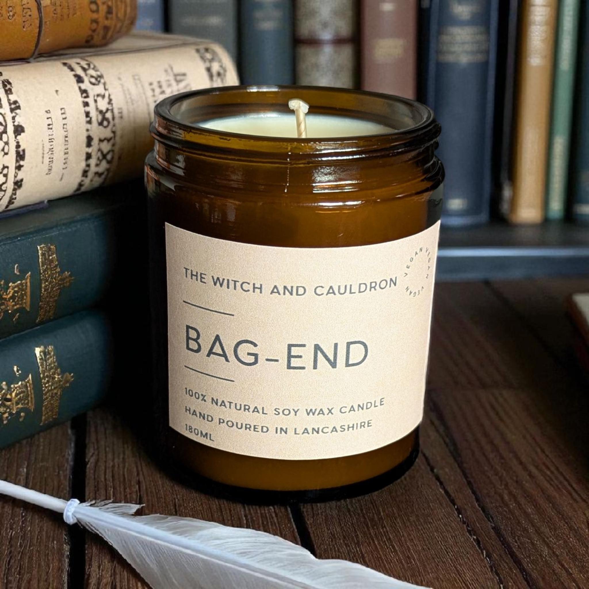 Our Bag-End Soy Wax Candle is inspired by J. R. R. Tolkien's fantasy novels The Hobbit and The Lord of the Rings! Bagshot Row, a street in the town of Hobbiton, and the location of the Hobbit-hole Bag-End. This candle is made with a blend of pure Cade, Cedarwood, Cypress and Nutmeg essential oils which, when blended, create the perfect smoky, woody aroma of Bilbo Baggins Hobbit-hole!
