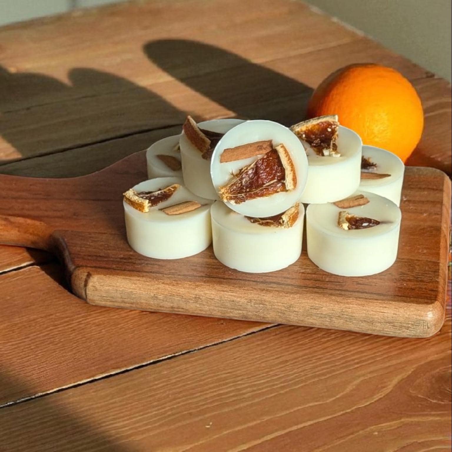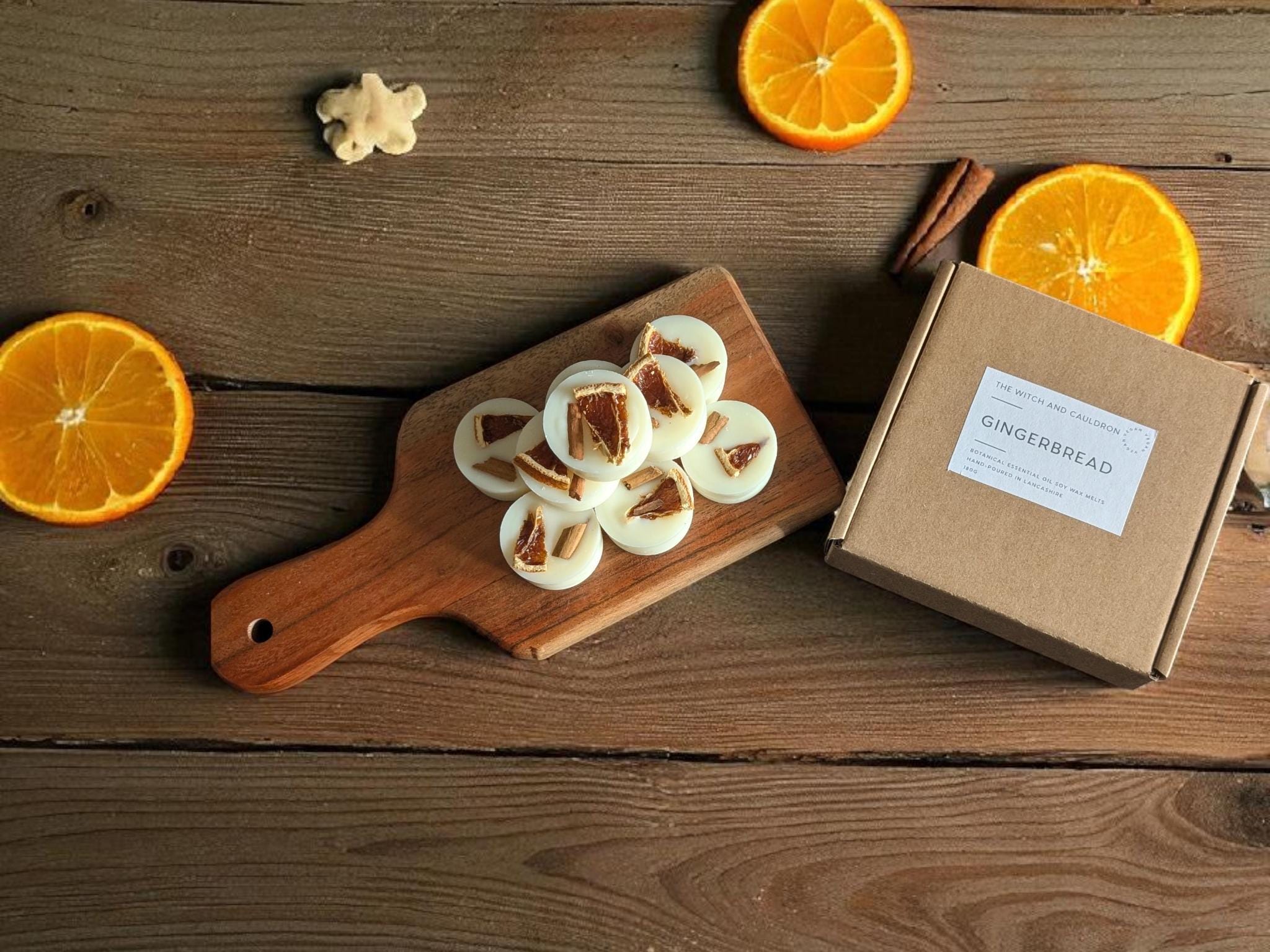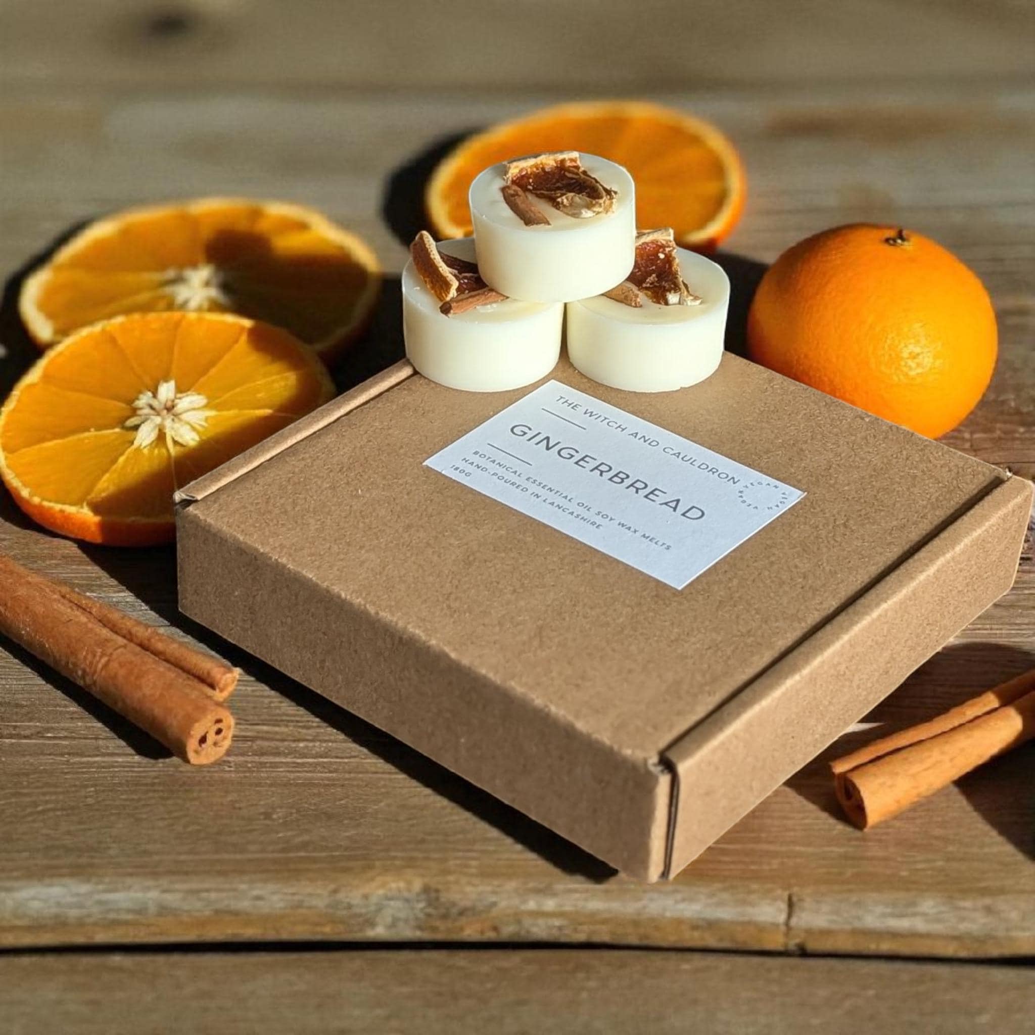 These Gingerbread Soy Wax Melts are made with a blend of Cinnamon Bark, Clove Leaf, Ginger and Nutmeg essential oils. The most comforting of seasonal oils are blended into these spicy wax melts for a nostalgic scent reminiscent of winter afternoon treats and festive bakes. Step into the snow-dusted doorway of the bakery and breathe in.....Each wax melt is decorated with small pieces of cinnamon stick and dried orange.