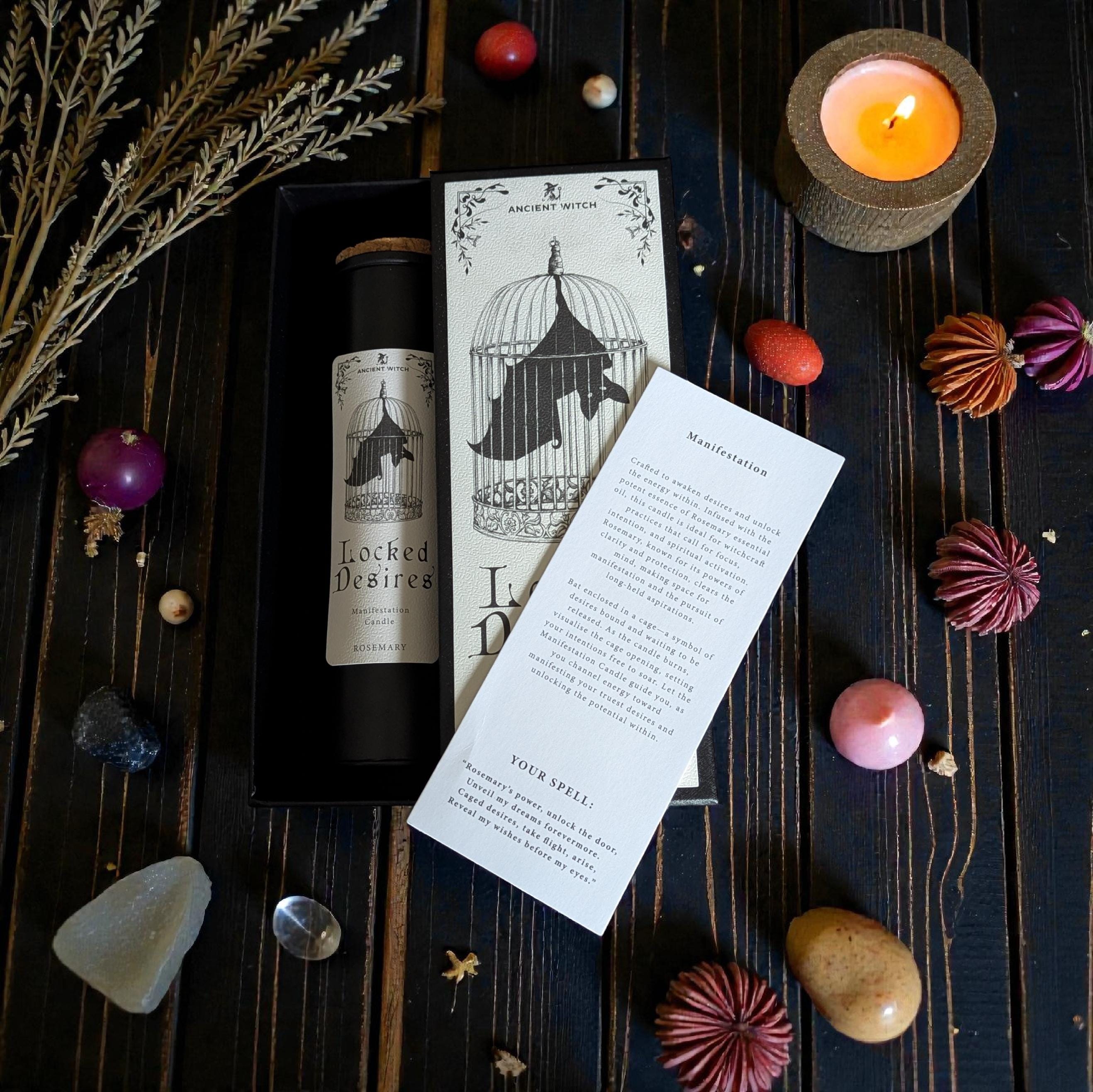 This Locked Desires Ritual Candle helps you tap into your hidden potential. The symbolic bat in a cage represents suppressed dreams and unspoken intentions ready to be released. The rosemary essential oil enhances focus and intention-setting during rituals.