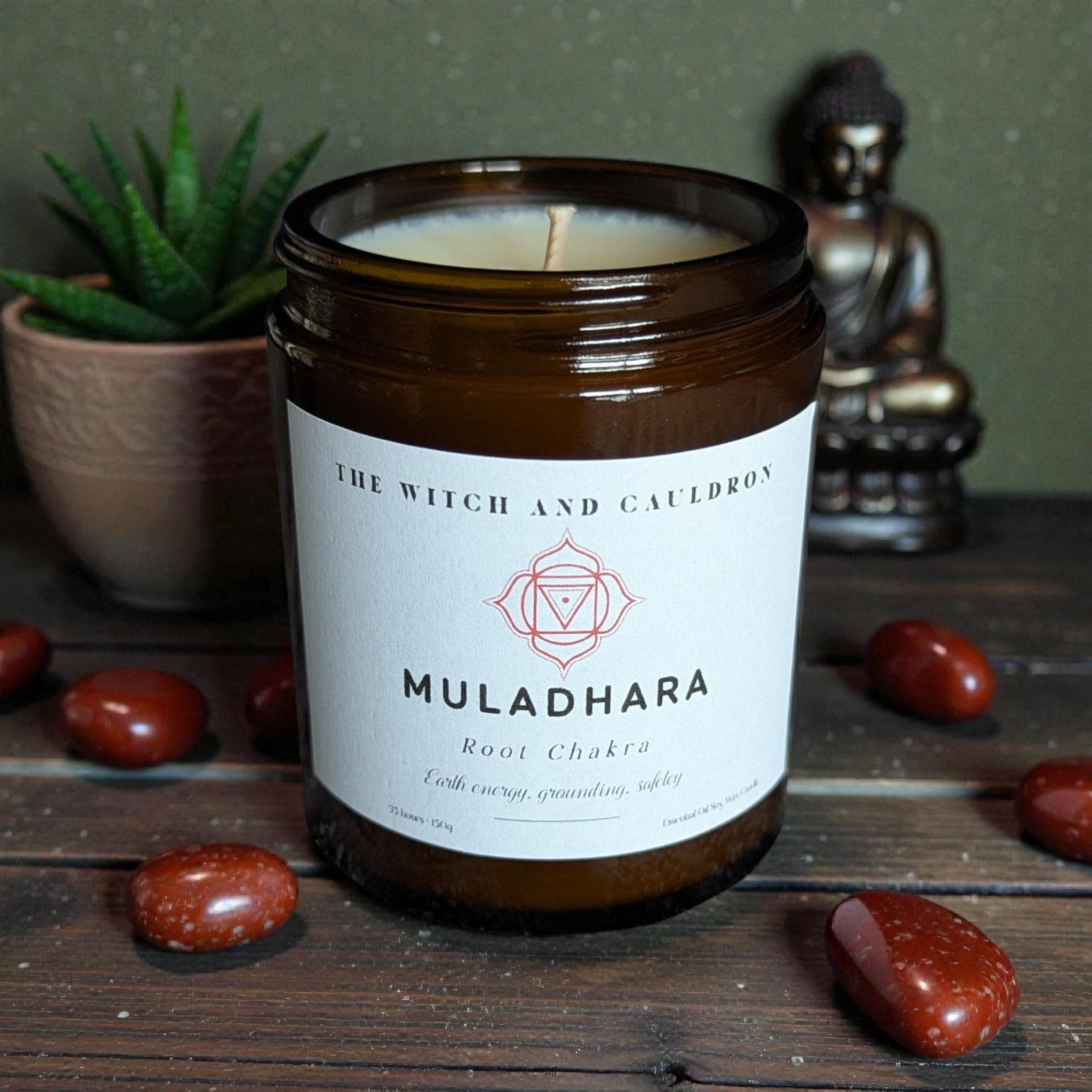 All my Chakra essential oil candles are hand-poured in 150g amber glass jars with a black screw lid. Amber glass protects the essential oils infused in my natural soy wax candles from potentially damaging sunlight. In aromatherapy, storing pure essential oils in dark coloured glass containers helps to preserve the integrity of these precious oils and their wonderful therapeutic benefits.