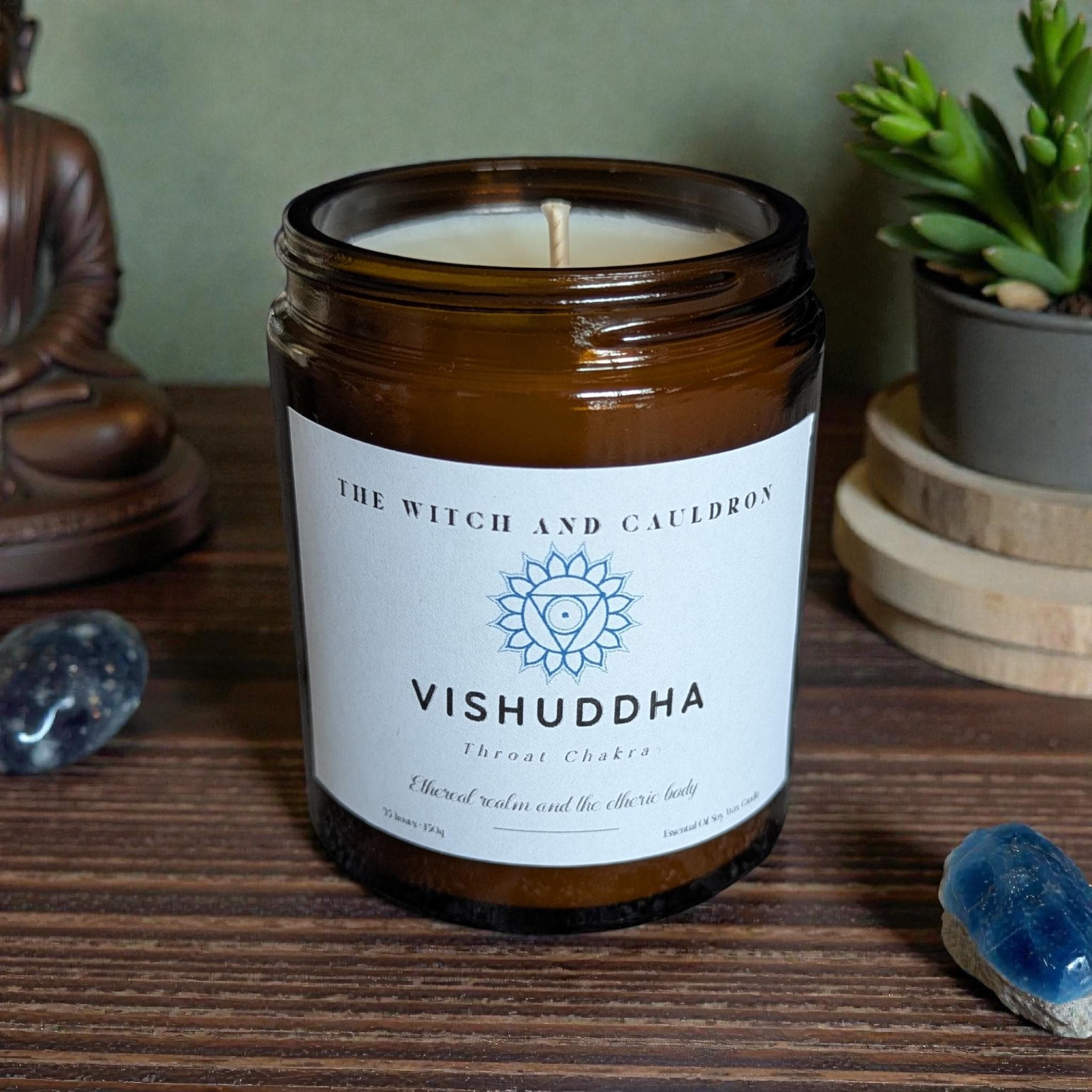 All my Chakra essential oil candles are hand-poured in 150g amber glass jars with a black screw lid. Amber glass protects the essential oils infused in my natural soy wax candles from potentially damaging sunlight. In aromatherapy, storing pure essential oils in dark coloured glass containers helps to preserve the integrity of these precious oils and their wonderful therapeutic benefits.