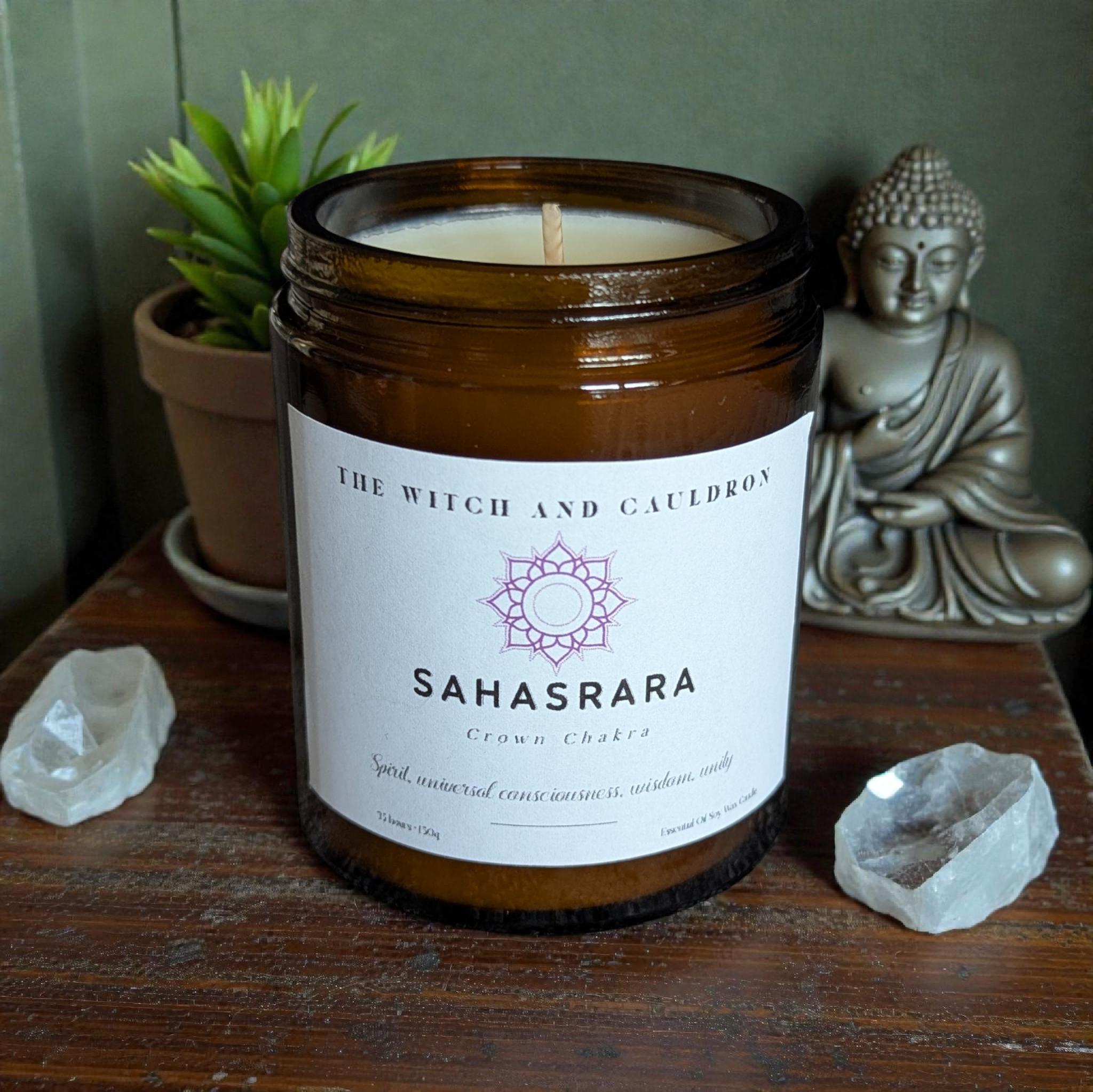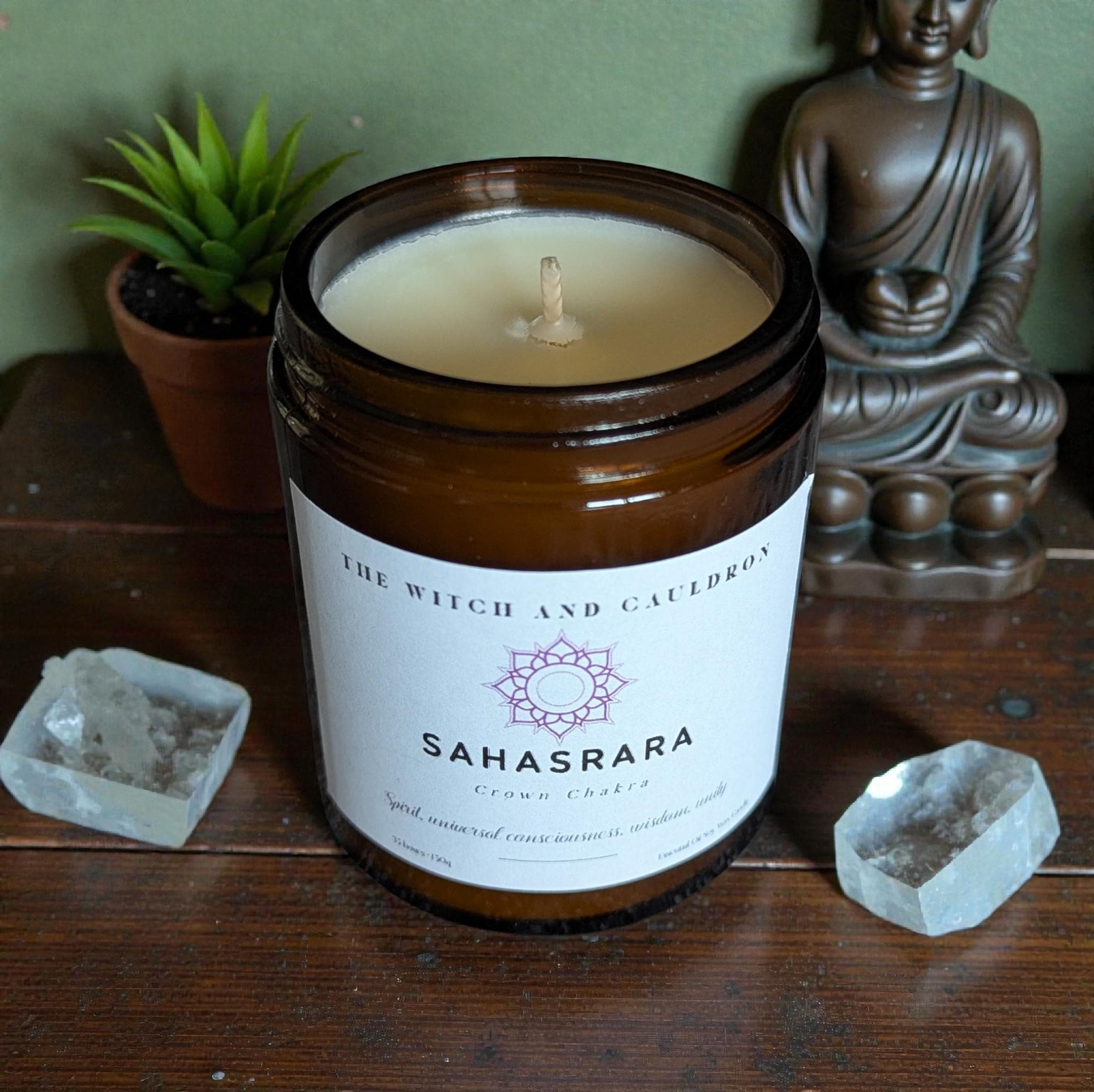 All my Chakra essential oil candles are hand-poured in 150g amber glass jars with a black screw lid. Amber glass protects the essential oils infused in my natural soy wax candles from potentially damaging sunlight. In aromatherapy, storing pure essential oils in dark coloured glass containers helps to preserve the integrity of these precious oils and their wonderful therapeutic benefits.