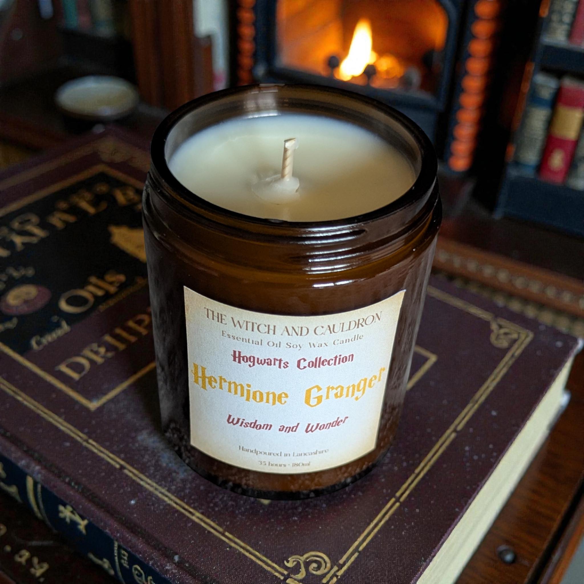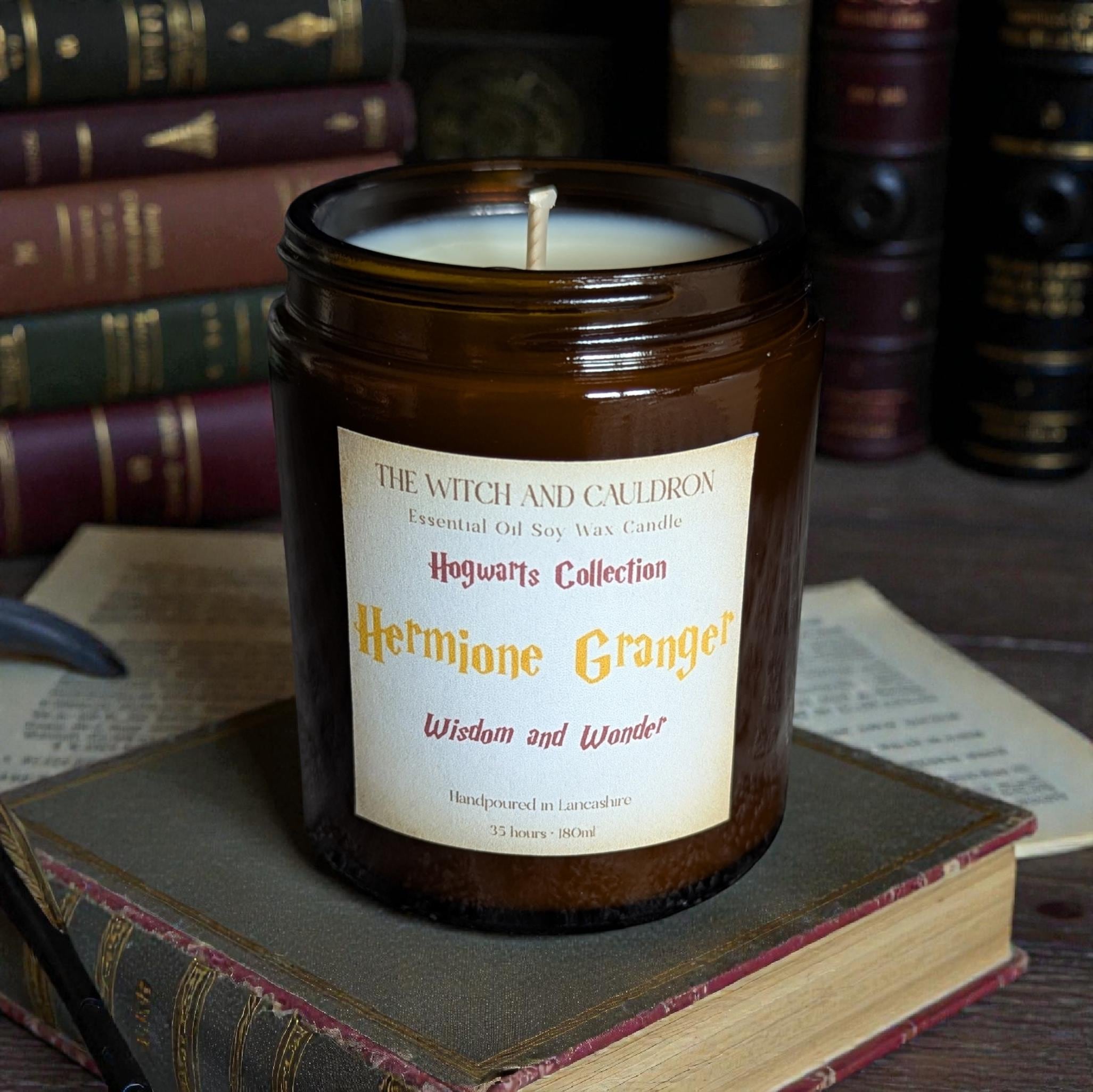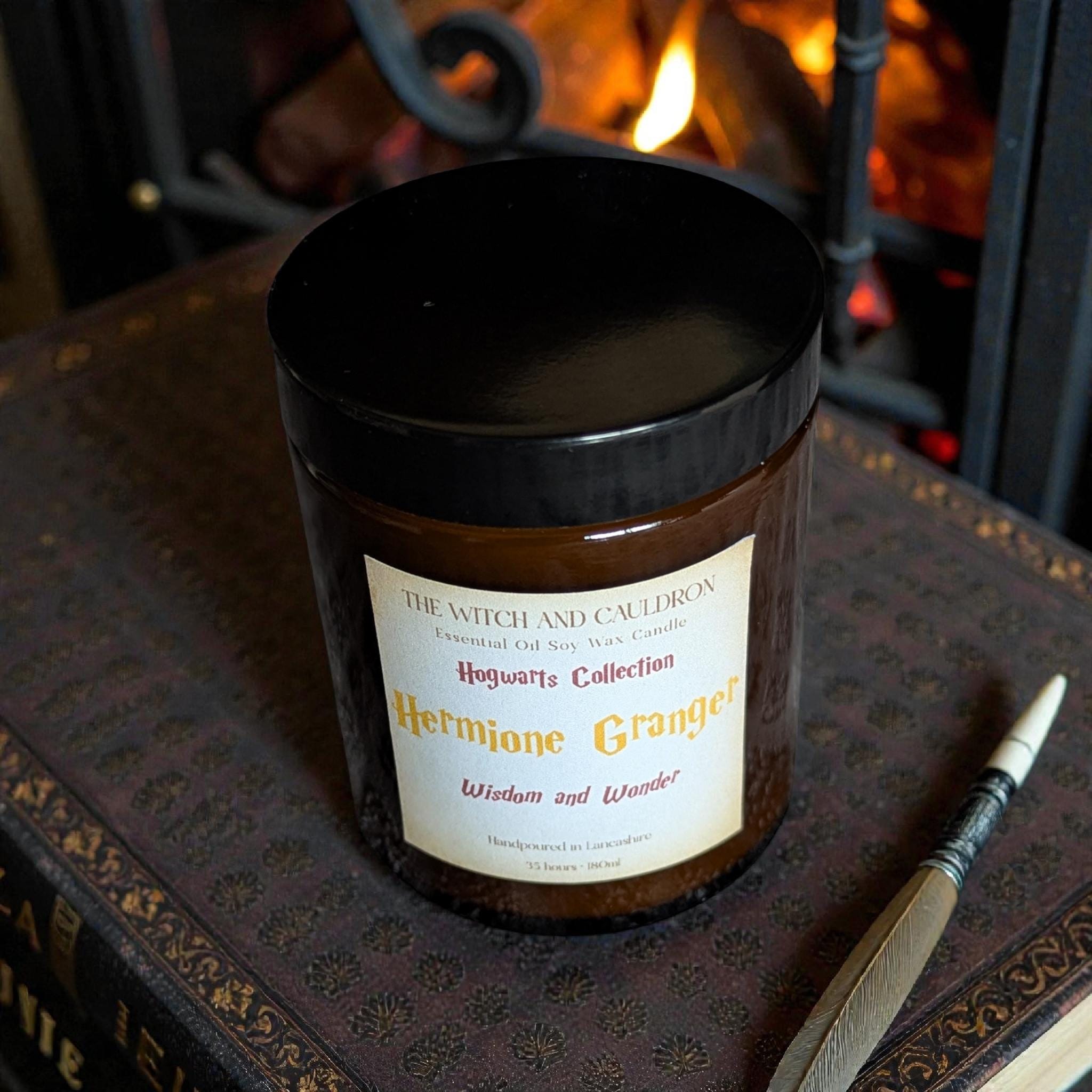 This Hermione Granger Soy Wax Candle has a beautiful blend of Spearmint, Lavender, Rosemary and Cedarwood essential oils evoke an embodiment of bravery, unwavering loyalty, and rigorous intellect.
