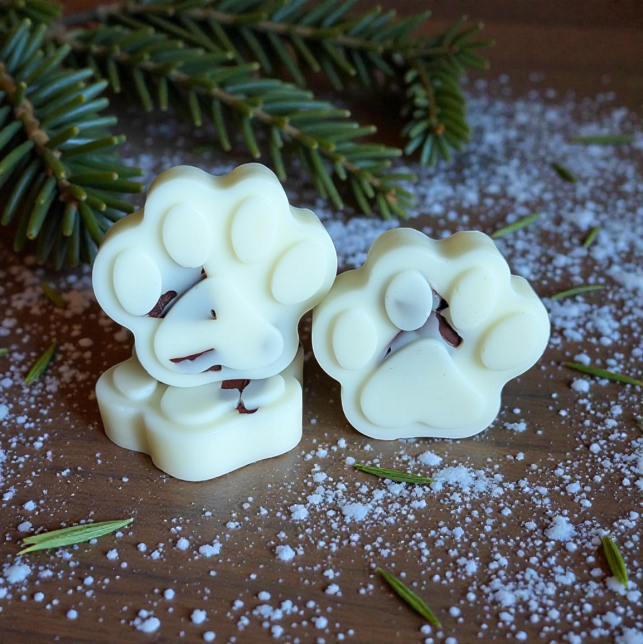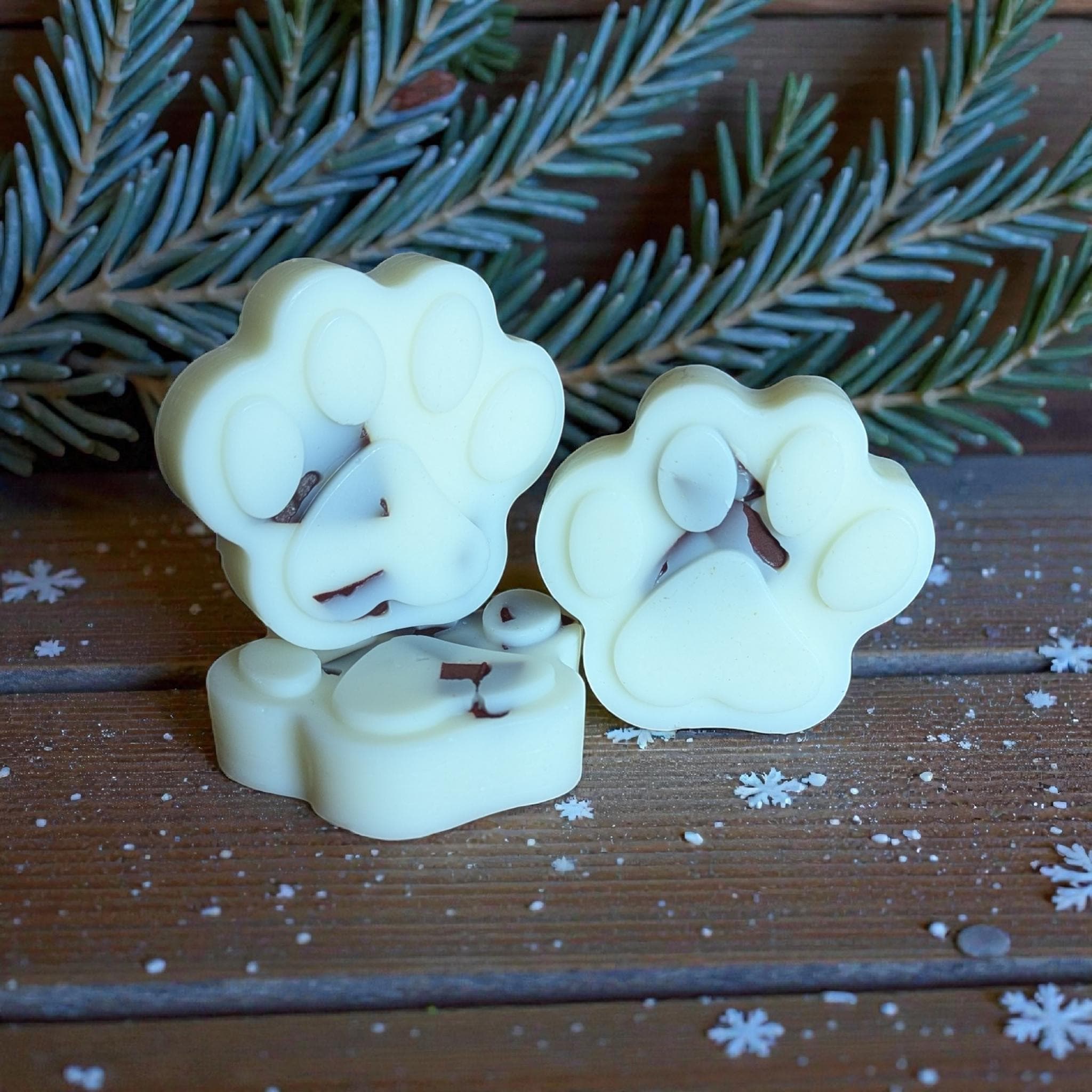 There is nothing better than wrapping up warm and going for crisp walks in the wintry air with you BFF! These Winter Walkies Dog Friendly Soy Wax Melts give you this feeling made with a blend of pure Pine Needle, Cardamon and Clove essential oils! These large paw shaped wax melts are decorated with pieces of Red Sapota leaves.