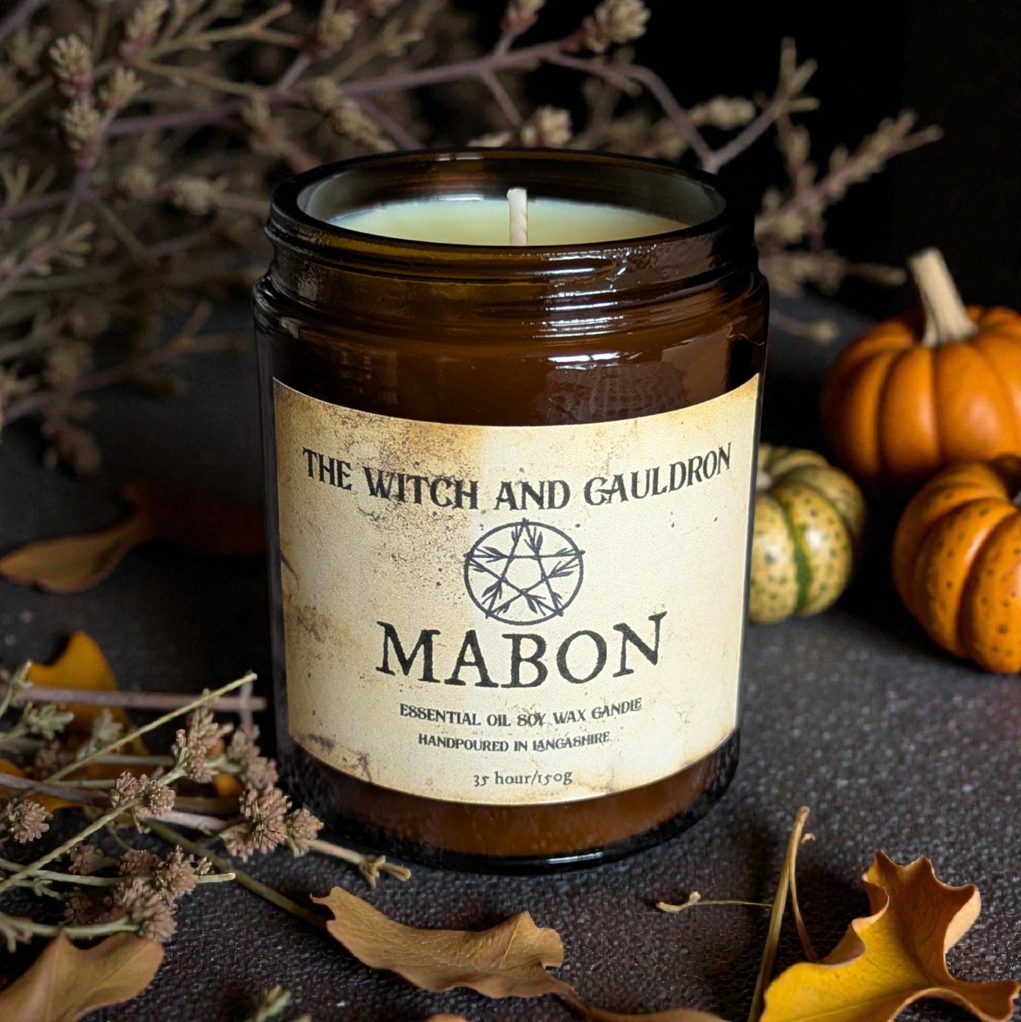This Mabon Soy Wax Candle has a blend of Sweet Orange, Cinnamon Bark, Cardamon, Clove and Cedarwood essential oils reflecting the harvest and transition into darker months