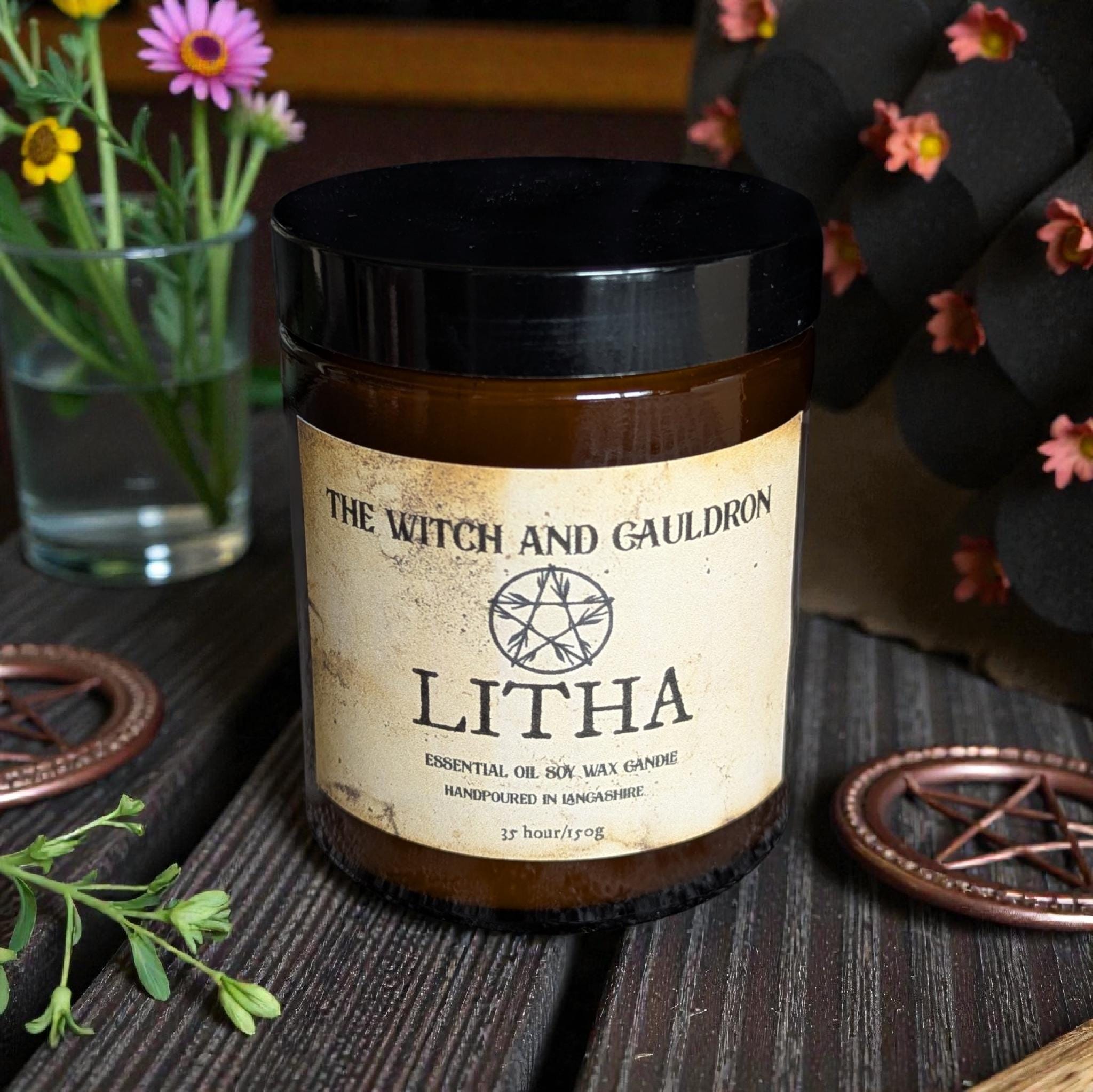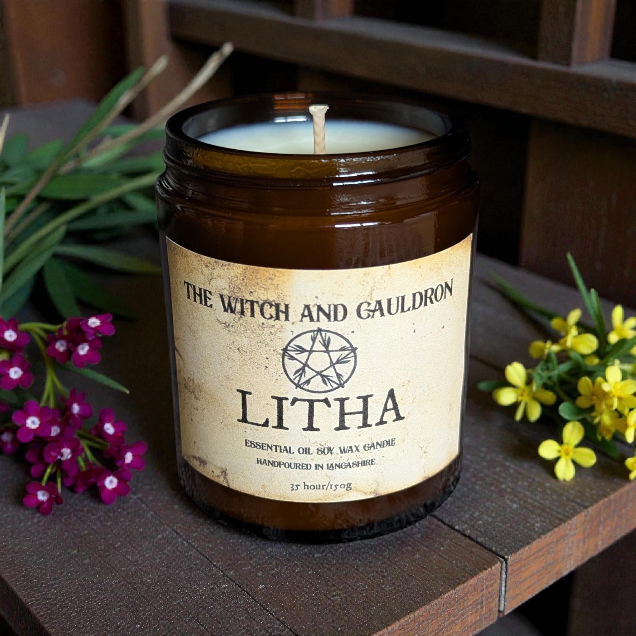 This Litha Soy Wax Candle has a blend of Pink Grapefruit, Lavender, Rose Geranium and Frankincense essential oils to celebrates the height of summer and the abundance of the sun’s energy.