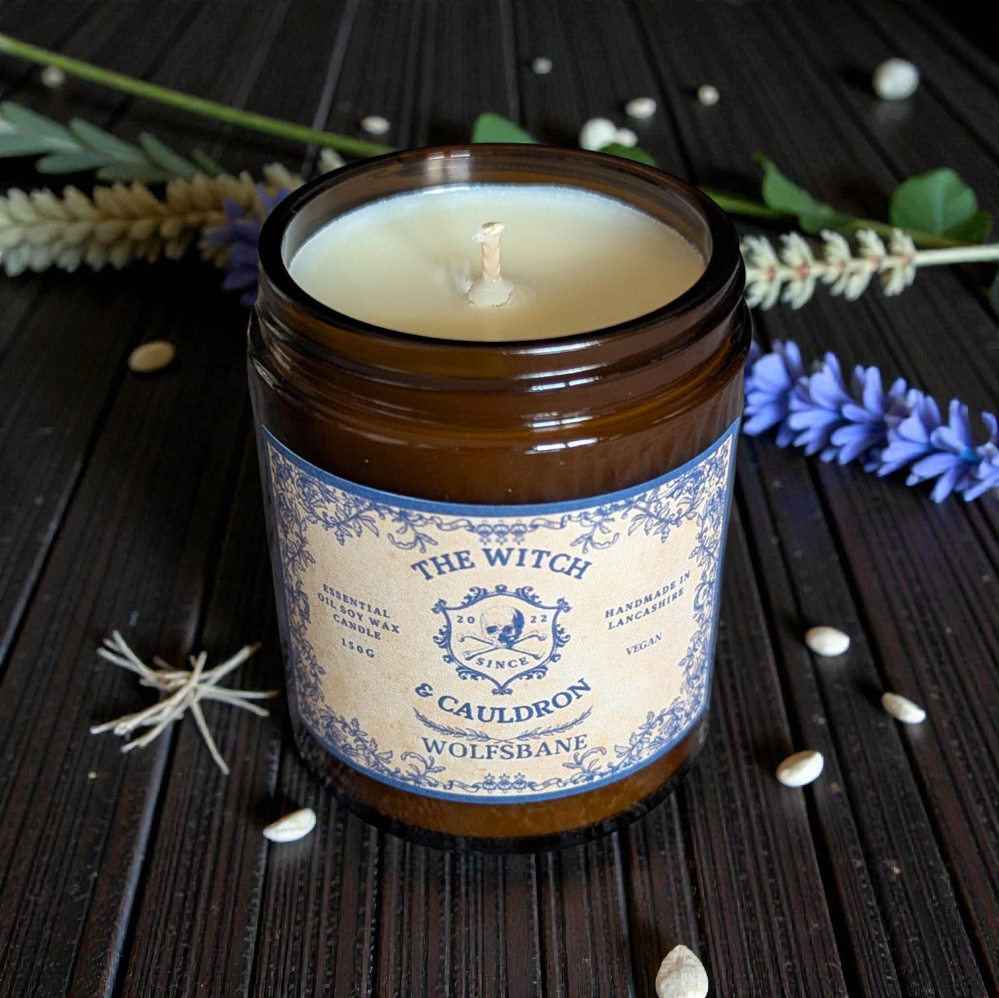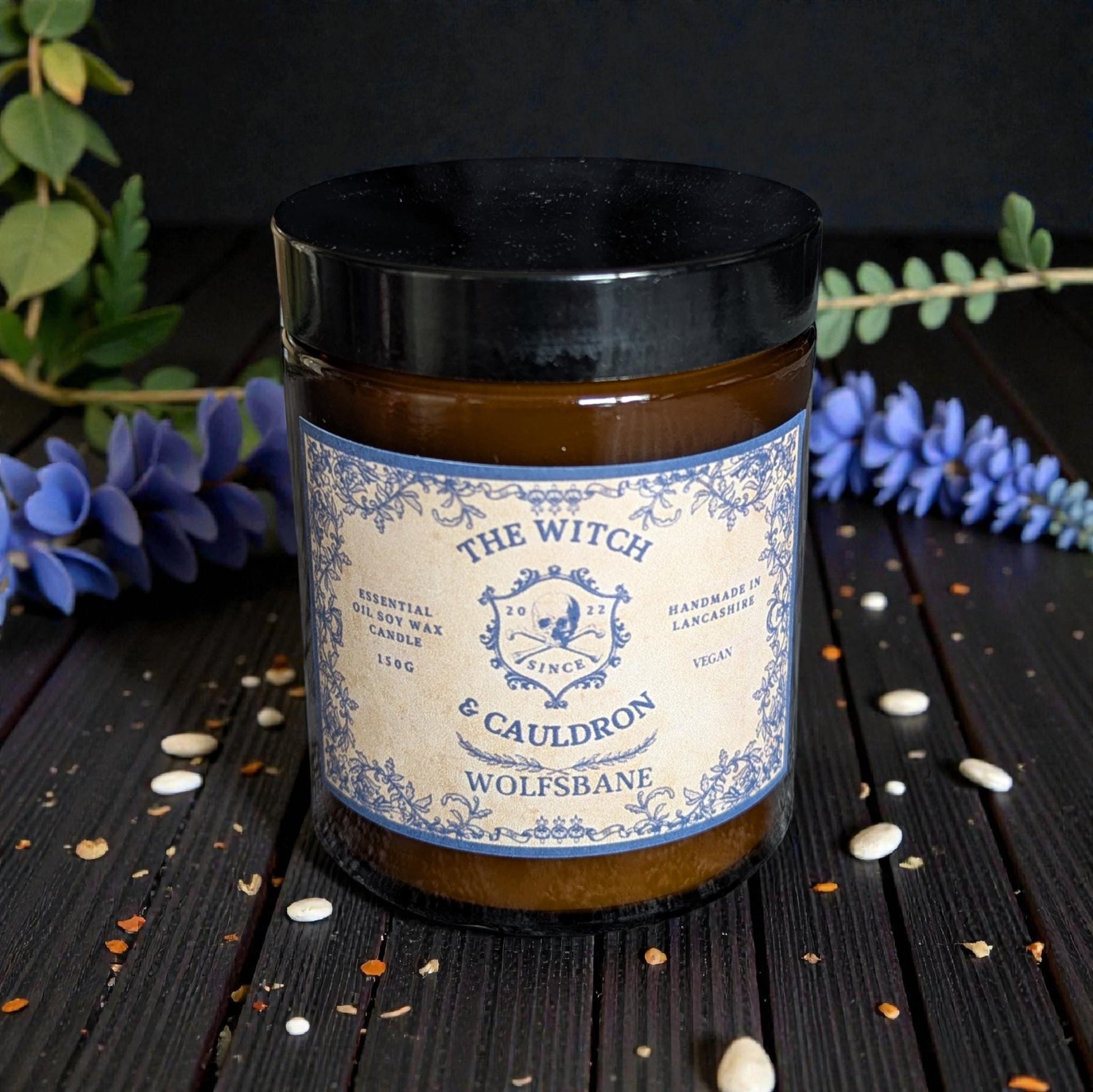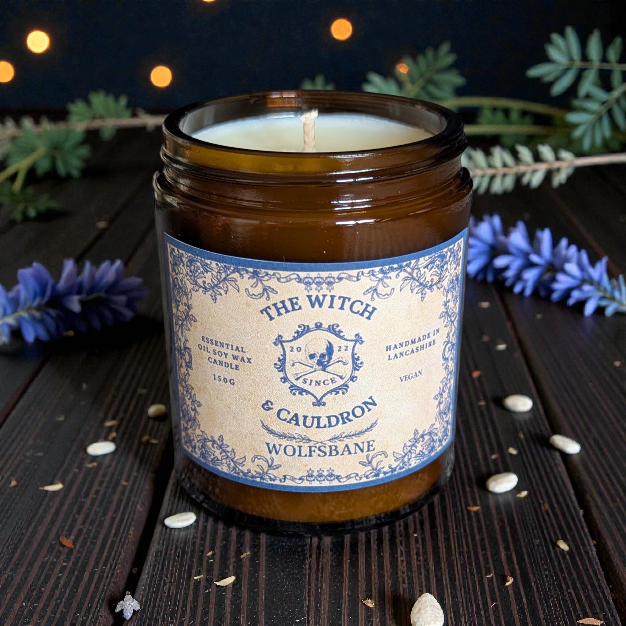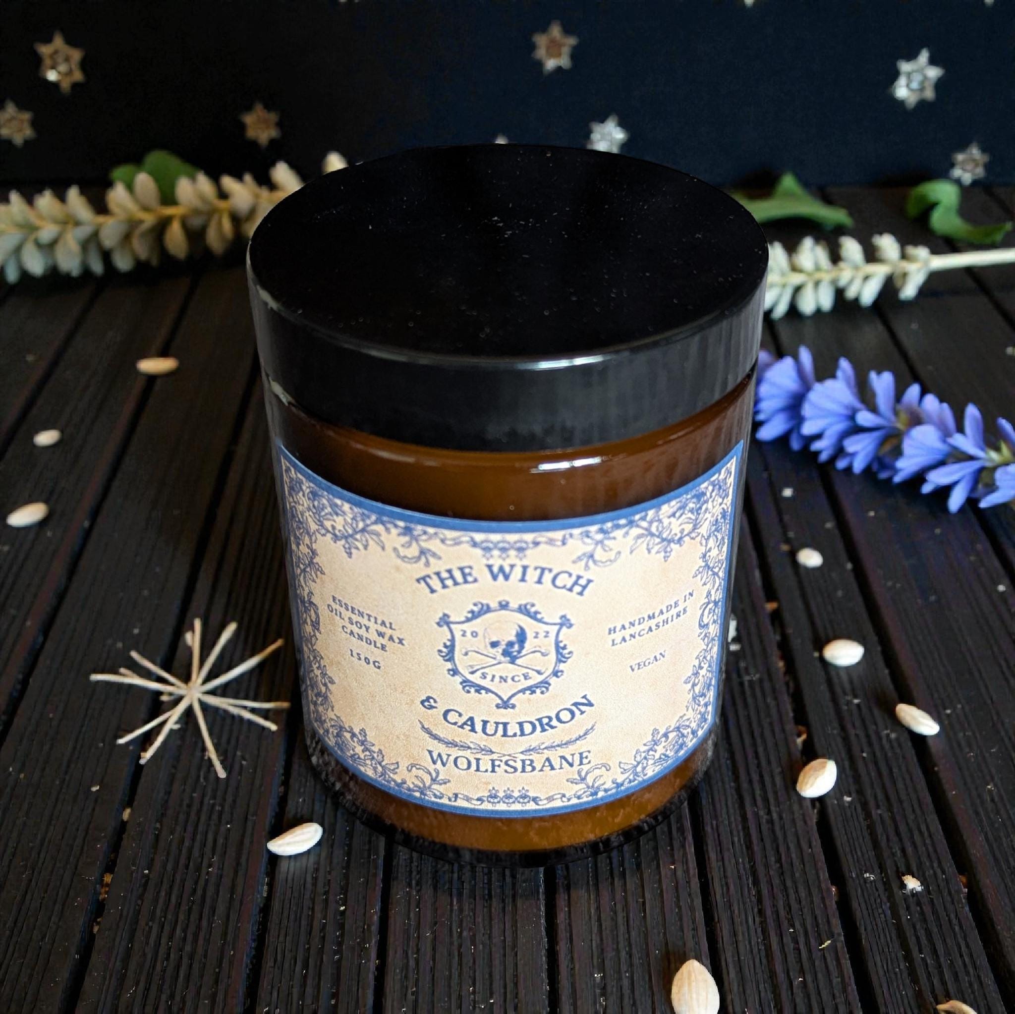 My Wolfsbane Soy Wax Candle is made with a dark, earthy blend of Galbanum, Juniper Berry, Vetiver and Patchouli essential oils to capture the damp, and root-like earthy quality of this beautiful but toxic plant.