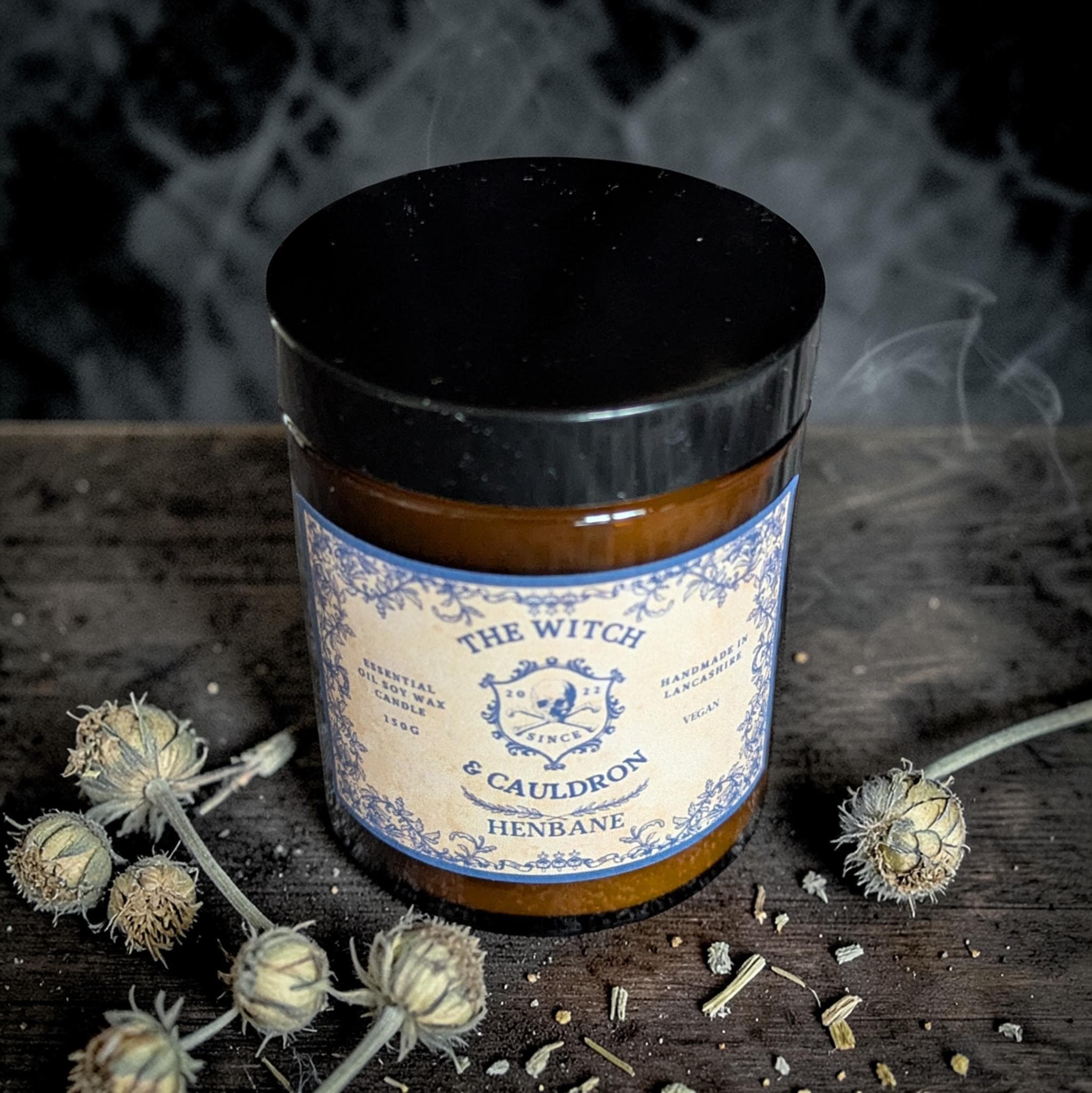 My Henbane Soy Wax Candle has a blend of Valerian Root, White Sage, Vetiver, Jasmine and Ylang-Ylang essential oils to mimic the ‘intoxicating’ slightly sweet aroma of this beautiful but deadly plant.