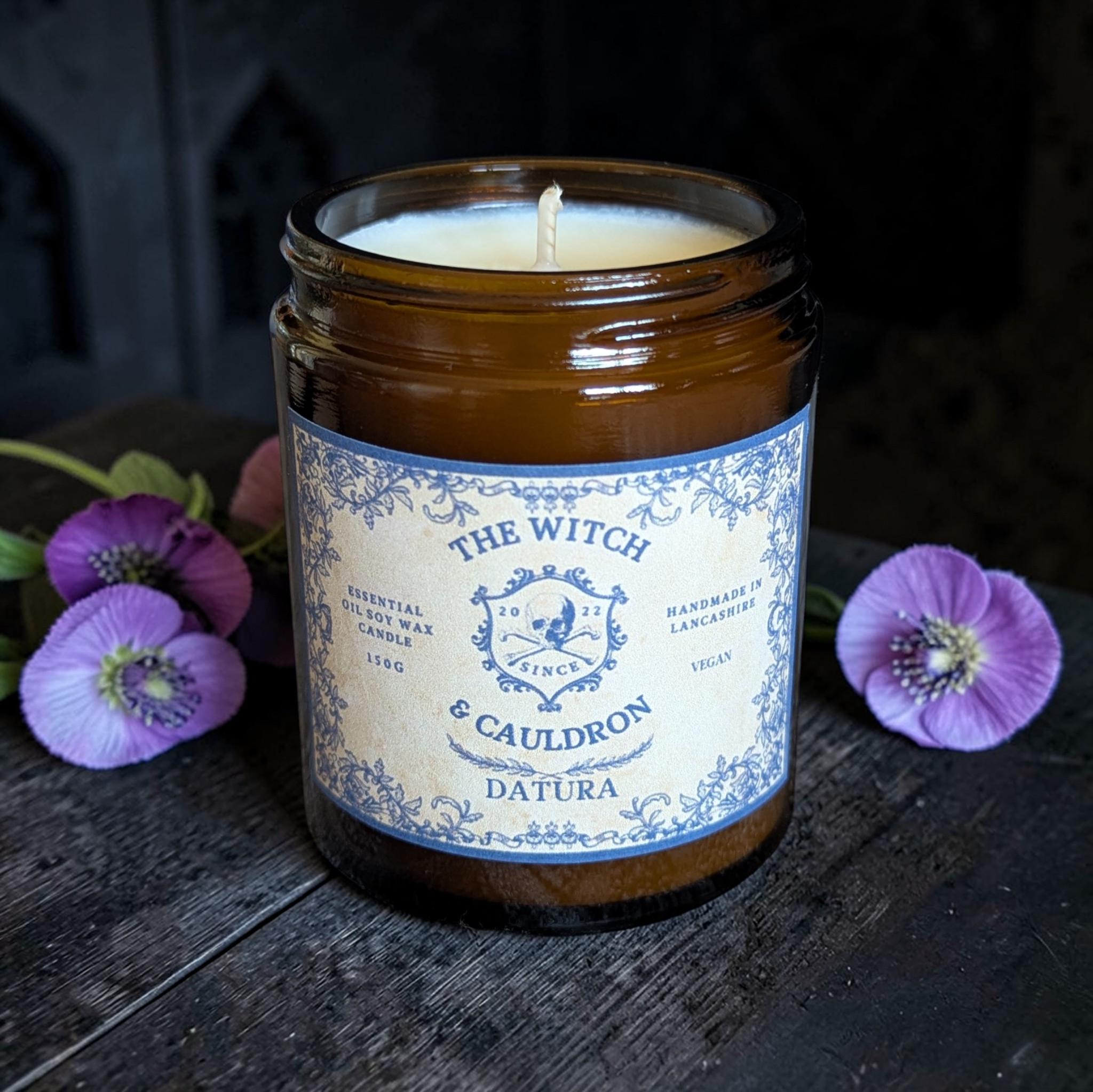 My Datura Soy Wax Candle has a blend of Ylang-Ylang, Neroli, Jasmine and Sandalwood essential oils to create the sweet, heavy and pleasant smell of the plant’s flowers, opposed to the foul smelling foliage.