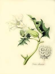Alongside deadly nightshade and henbane, datura is considered a classic "witch's weed," frequently used in brews and ointments to induce trance states or hallucinations. In medieval European folklore, Datura was a key ingredient in "witches' flying ointments." When mixed with fat and applied topically, it was believed to allow witches to fly to the Sabbat, or to facilitate astral projection.