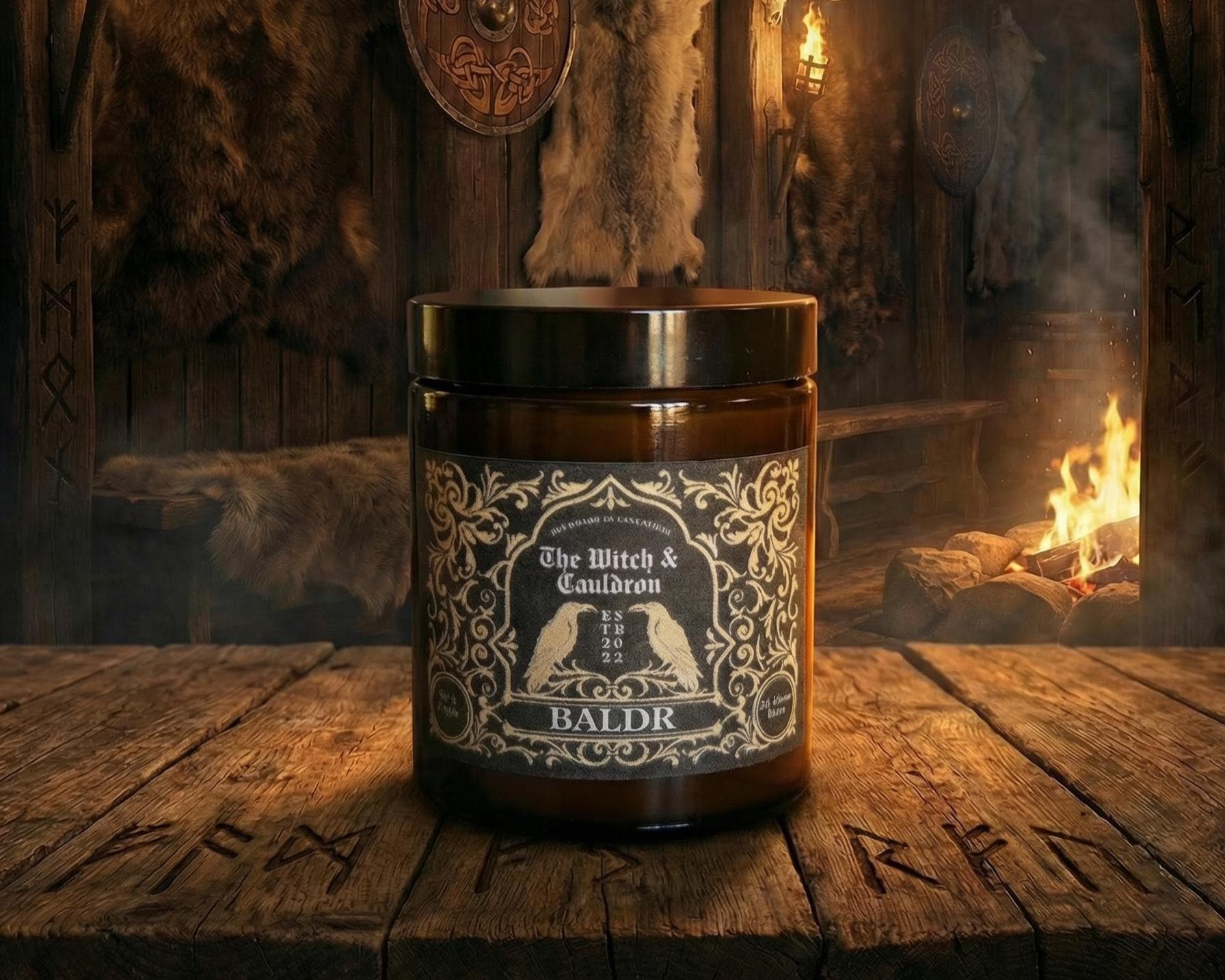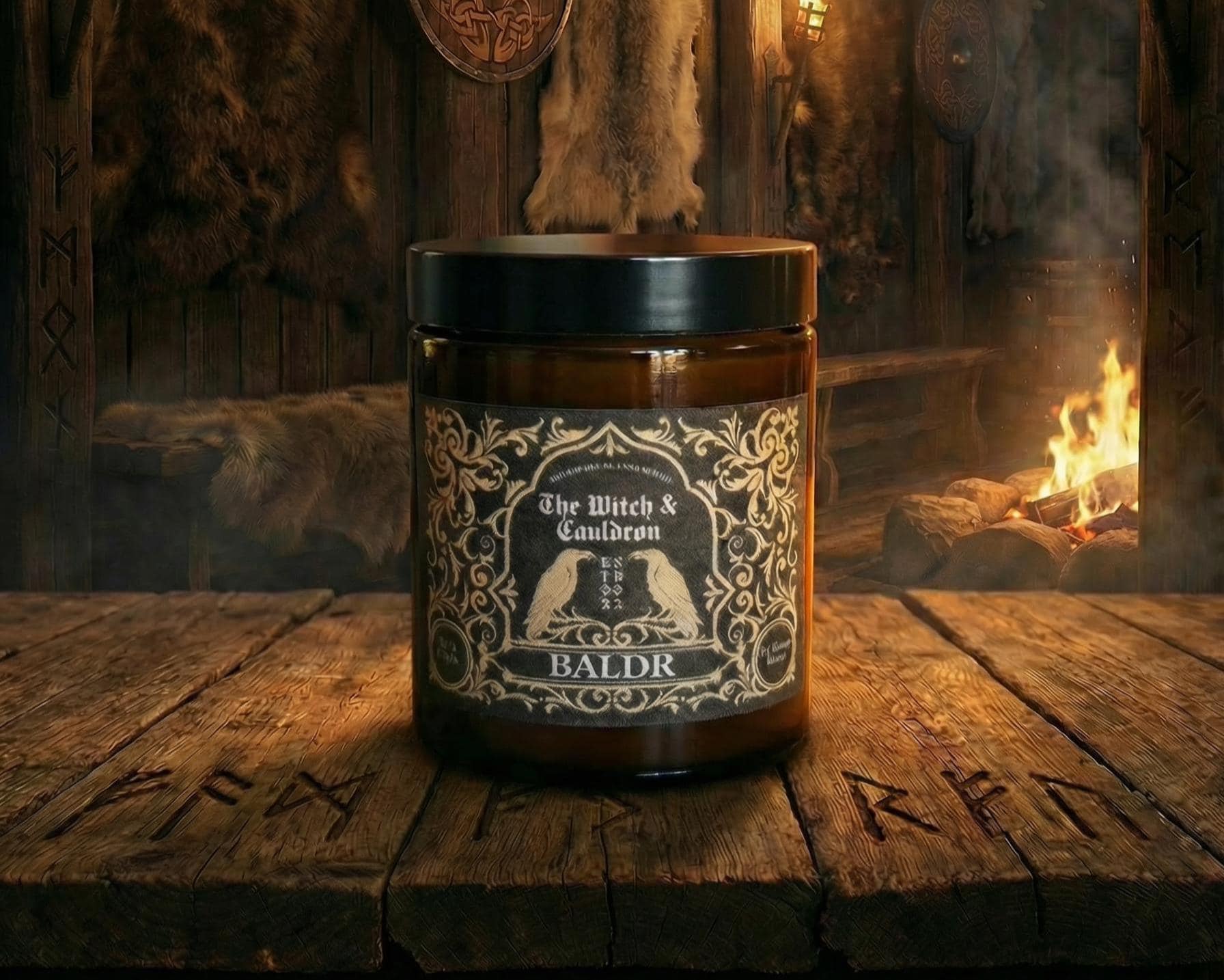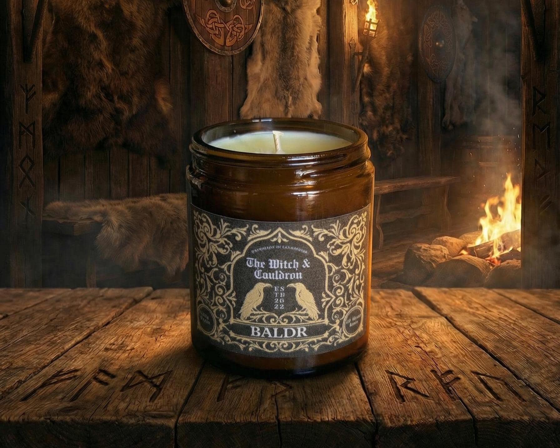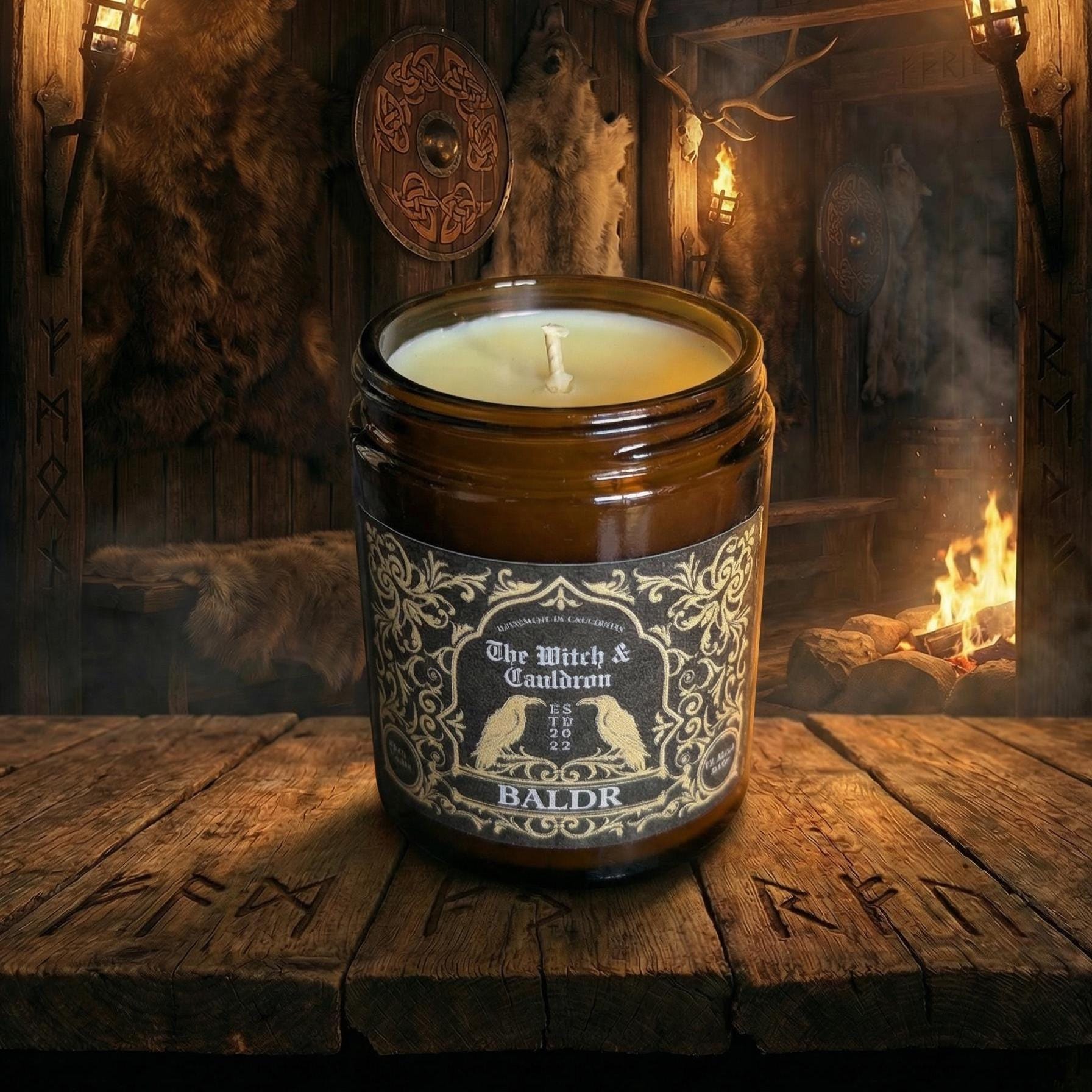 My Baldr Soy Wax Candle has a gentle blend of Sweet Orange, Chamomile, Juniper Berry and Sandalwood essential oils to reflect Baldr’s radiant, gentle, and peaceful nature.