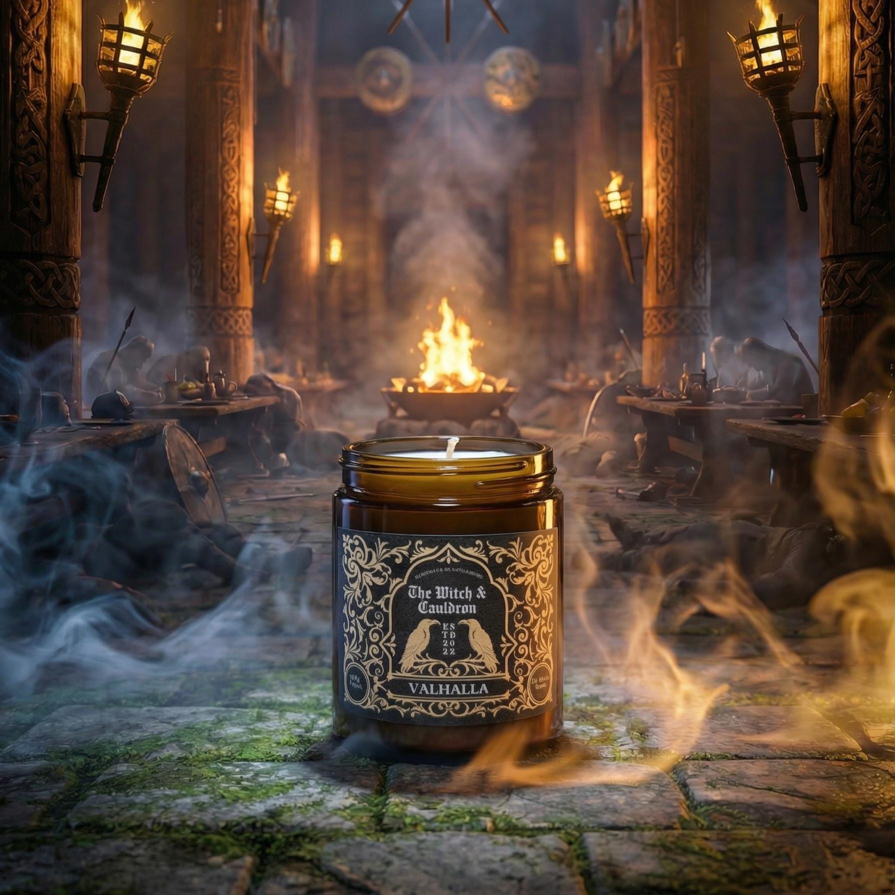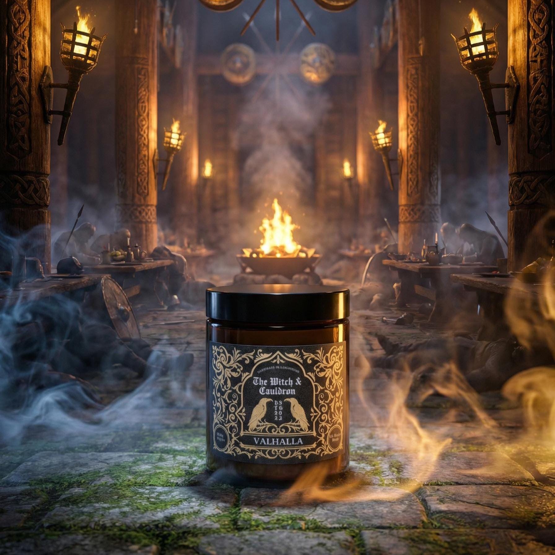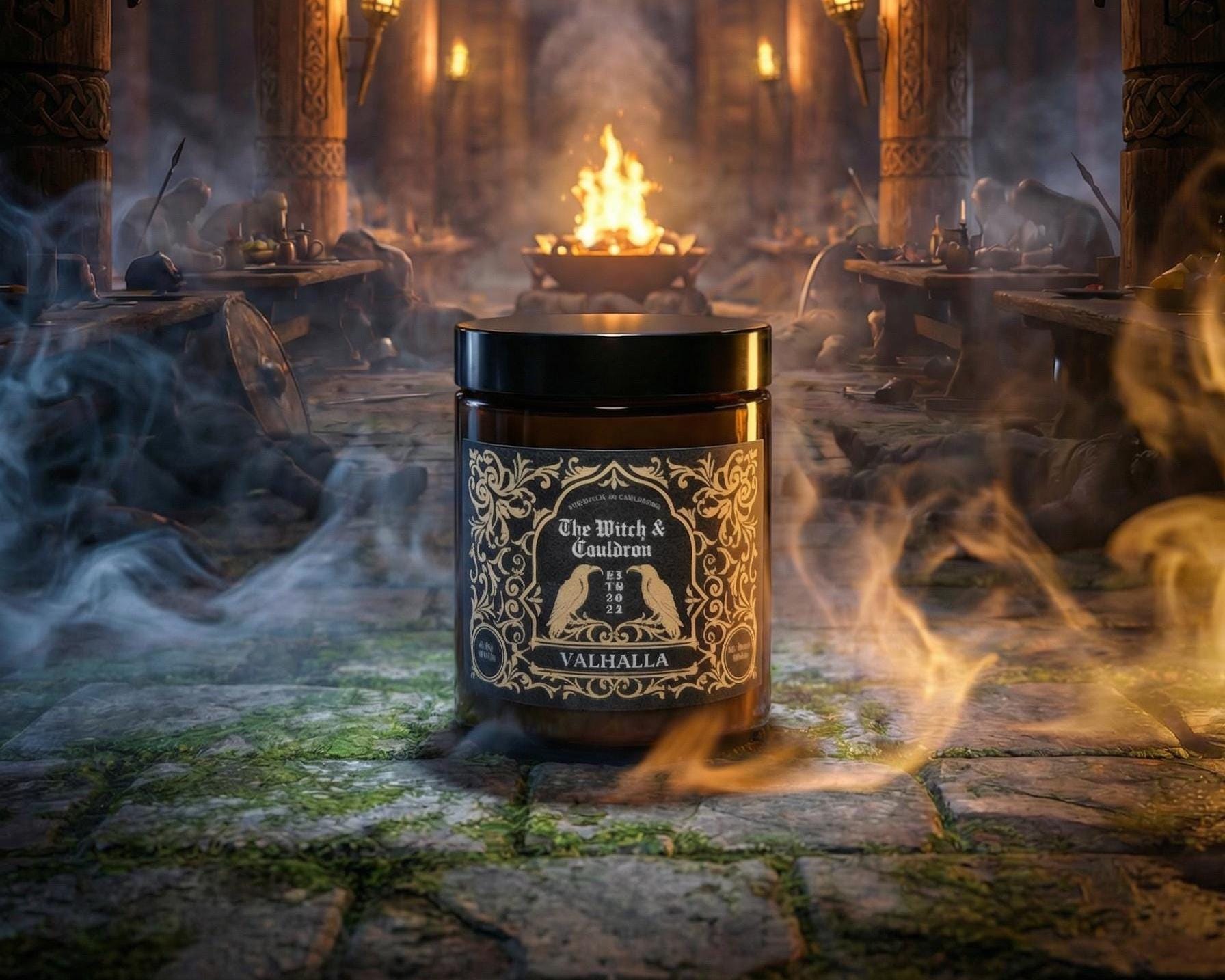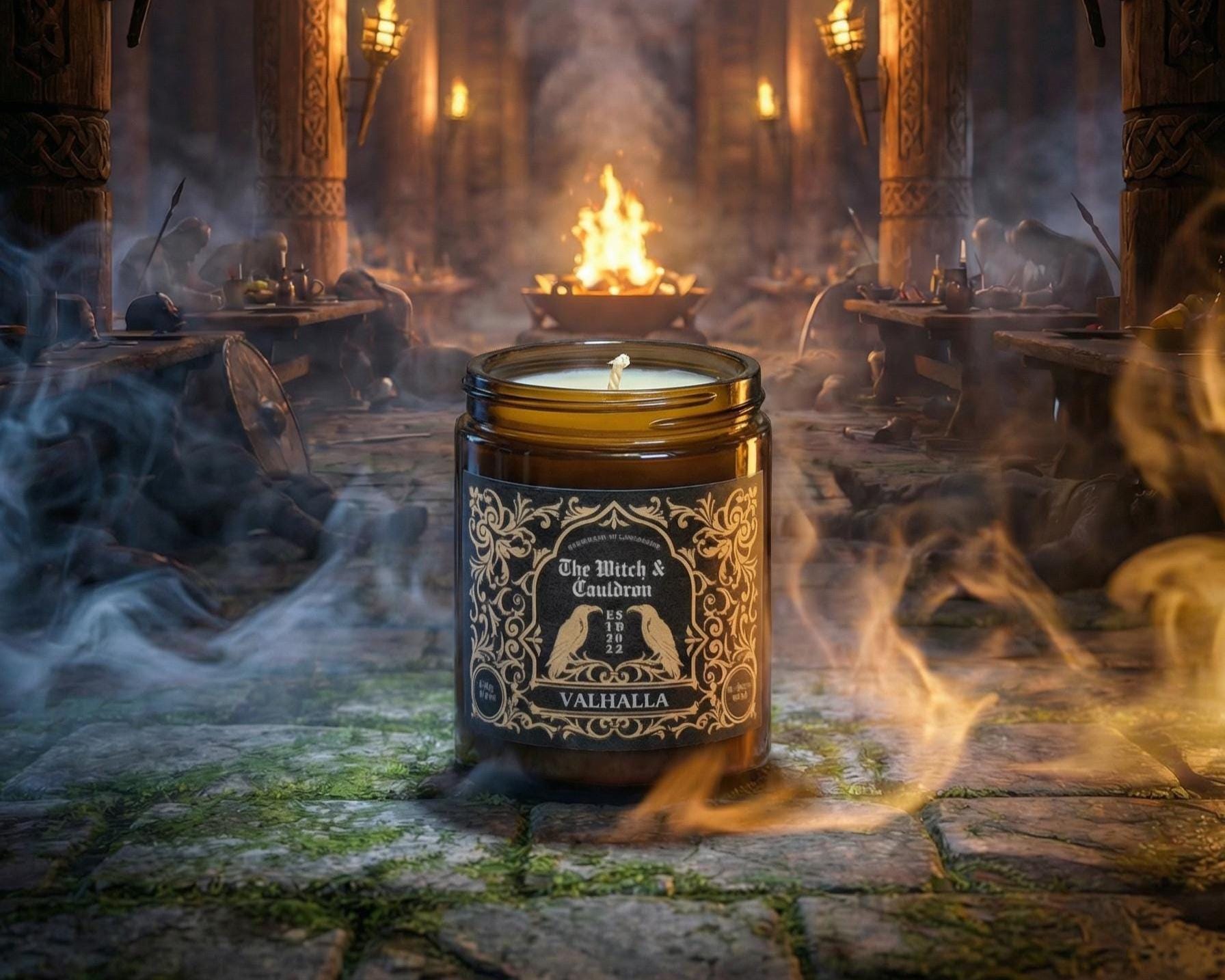 This Valhalla Soy Wax Candle has an ancient warm and woody blend of Cedarwood, Sandalwood, Frankincense, Cinnamon Bark, and Clove essential oils to represent a warm, woody, and heroic aroma!