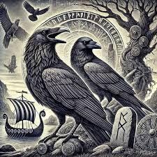 In Norse mythology, Odin’s two ravens, Huginn and Muninn, are symbols of thought and memory.